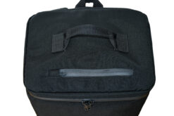 Inside the bag, three smaller pockets and two side open pockets help with organized packing. There is a pocket on the top, both inside and outside, and there is also one on the side. In the lower zippered compartment, not only you can fit a pair of shoes, but you can also fold in a wetsuit, ensuring that wet or dirty items don’t mix with your dry, clean gear. The side pockets are designed for holding water bottles. The backpack is made from the strong and durable CORDURA® material, just like the exteriors of bike carrier bags.